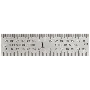 Starrett C604R-2 Spring Tempered Steel Rule With Inch Graduations, 4R Style Graduations, 2" Length, 1/2" Width, 3/64"...